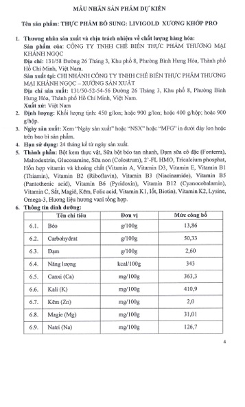 Tên hàng hóa: TPBS Livigold Xương khớp PRO (900gr)