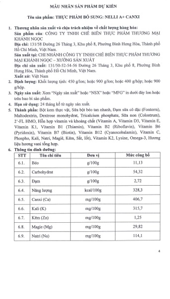 Tên hàng hóa: TPBS Nelli A+ Canxi (900gr)