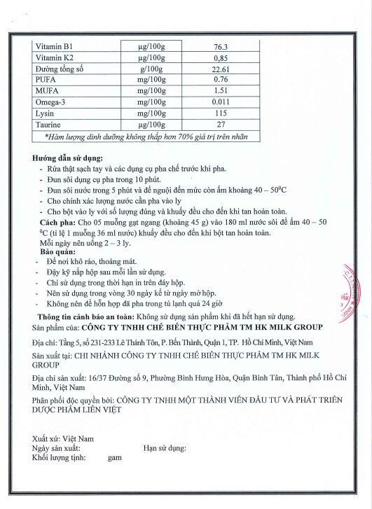 Tên và địa chỉ của tổ chức, cá nhân chịu trách nhiệm về hàng hóa– Công ty TNHH Một Thành Viên Đầu Tư và Phát triển Dược phẩm Liên Việt. GPDKKD: 4300858438 do Sở Kế hoạch Thành phố Quảng Ngãi cấp ngày 06/10/2020. Trụ sở chính: Hẻm 182 Hùng Vương, Phường Trần Phú, Thành phố Quảng Ngãi, Tỉnh Quảng Ngãi, Việt Nam. Chịu trách nhiệm nội dung Phạm Văn Việt.