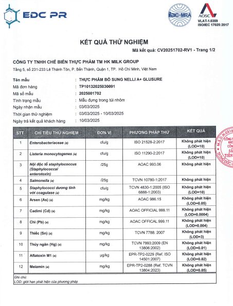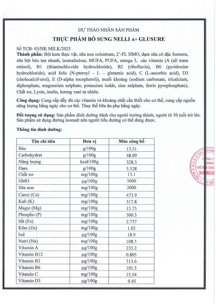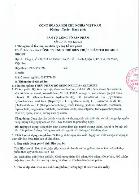 Tên hàng hóa: Sữa Nelli Glusure 900gr