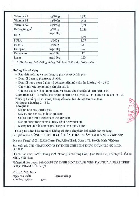_ Dành cho trẻ đang trong giai đoạn phát triển trí não, chiều cao và thị giác