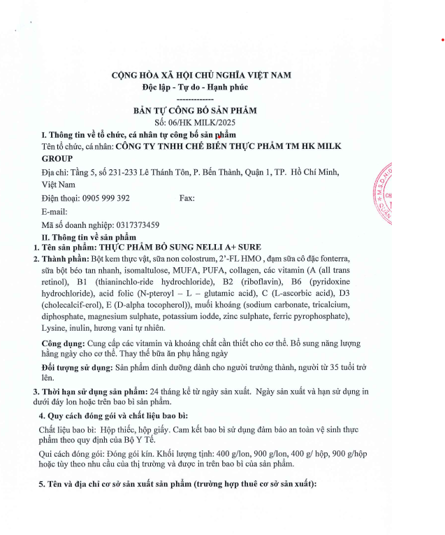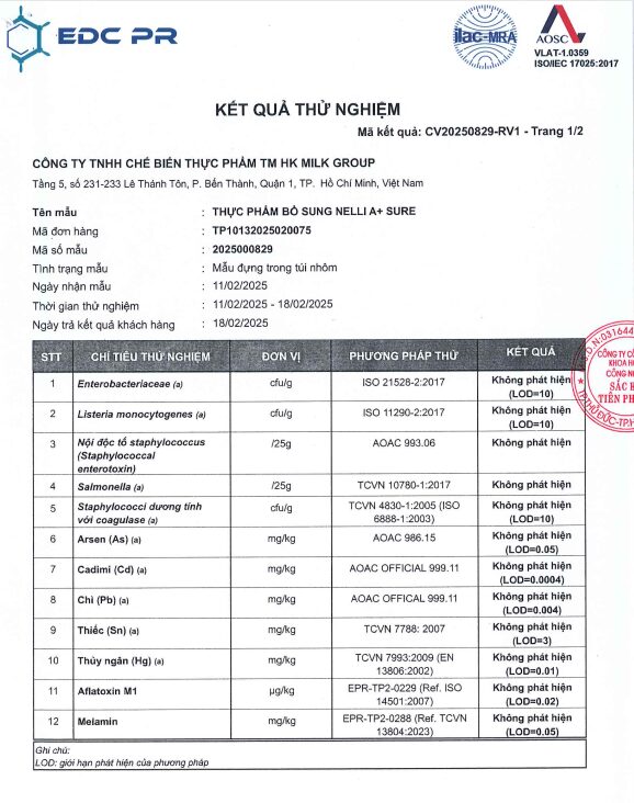 Tên hàng hóa: Sữa Nelli Sure 900gr