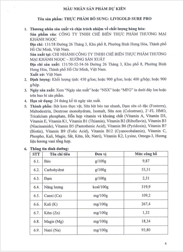 Tên và địa chỉ của tổ chức, cá nhân chịu trách nhiệm về hàng hóa. Công ty TNHH Một Thành Viên Đầu Tư và Phát triển Dược phẩm Liên Việt. GPDKKD: 4300858438 do Sở Kế hoạch Thành phố Quảng Ngãi cấp ngày 06/10/2020. Trụ sở chính: Hẻm 182 Hùng Vương, Phường Trần Phú, Thành phố Quảng Ngãi, Tỉnh Quảng Ngãi, Việt Nam. Chịu trách nhiệm nội dung Phạm Văn Việt.