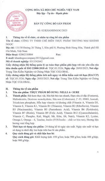 Tên hàng hóa: TPBS Nelli A+ Sure (900gr)