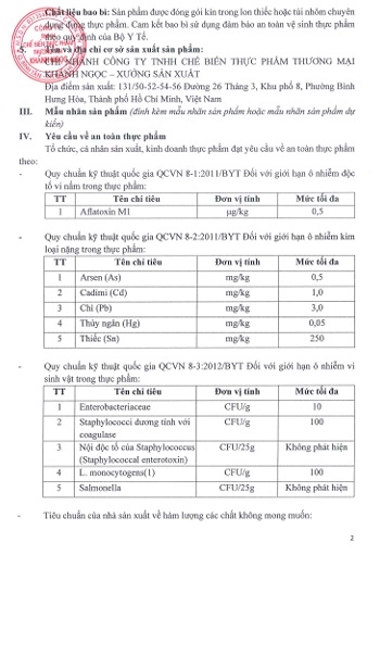 Thông tin về sản phẩm, nhà sản xuất,… như trong giấy công bố bên dưới hoặc trên sản phẩm