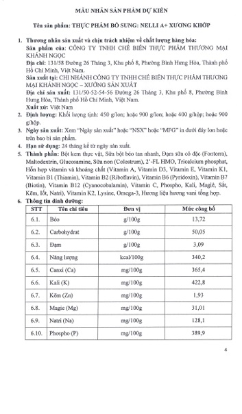 Tên hàng hóa: TPBS Nelli A+ Xương khớp (900gr)