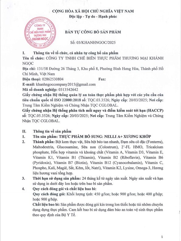 Tên hàng hóa: Nelli Xương khớp 900gr
