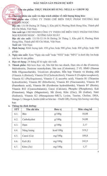 Tên hàng hóa: TPBS Nelli A+ Grow- IQ (900gr)